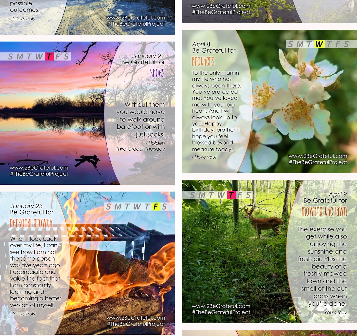 One of the simplest ways to support The Be Grateful Project is by purchasing a calendar or other gratitude-inspired merchandise through Samantha’s Etsy shop: thebegratefulproject.etsy.com.
